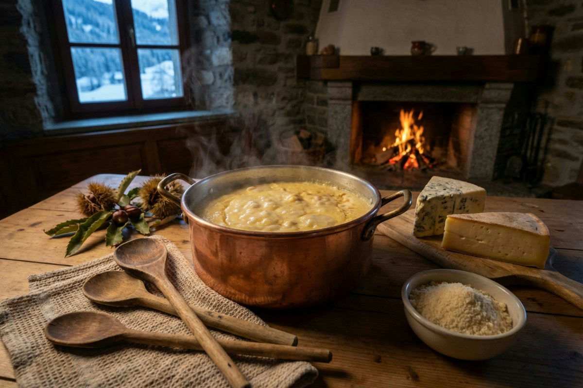 Preparazione della polenta ai formaggi