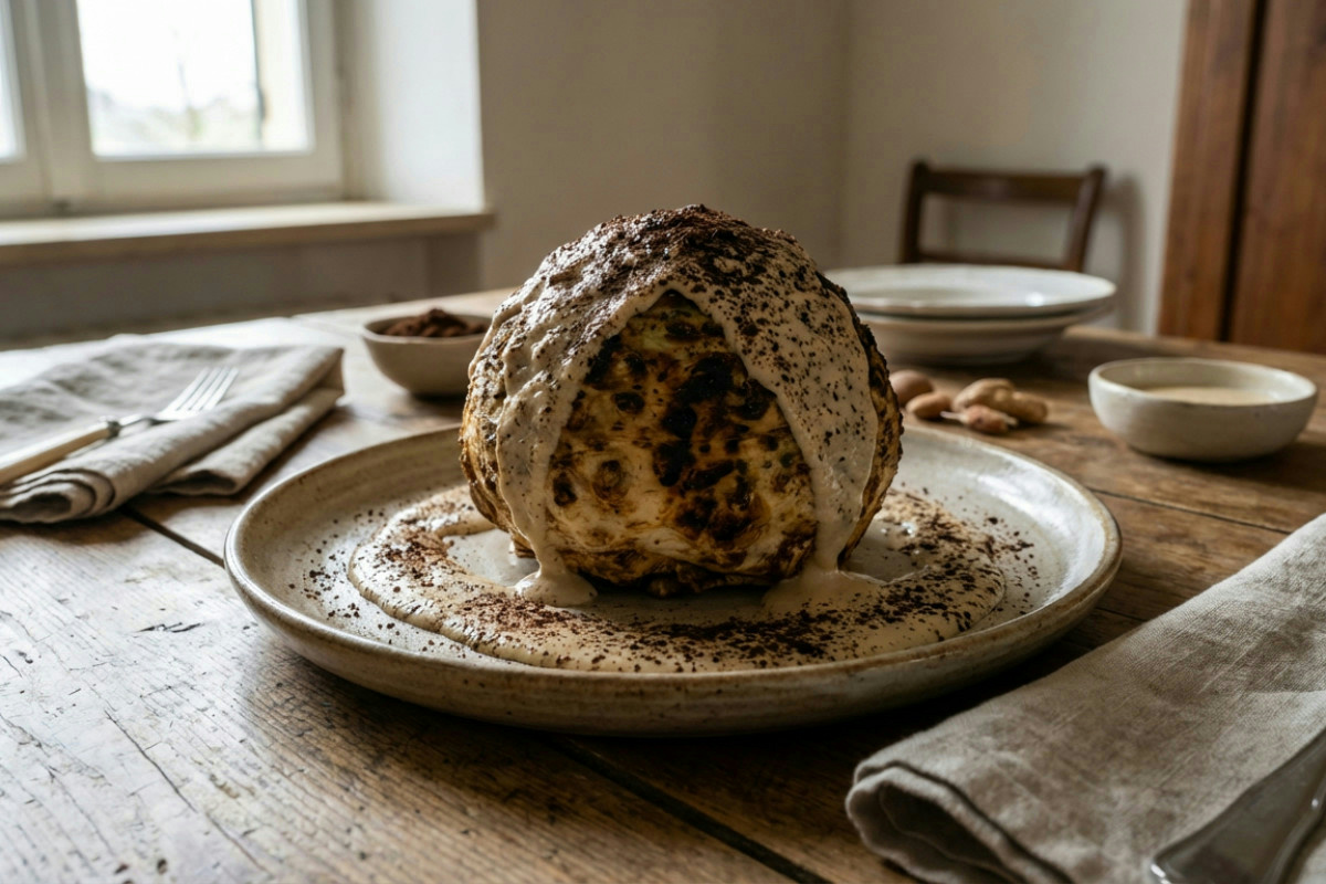 Immagina una serata speciale, magari una cena con amici o un momento romantico con il tuo partner. Vuoi lasciare un’impressione duratura, vero? Ecco, lascia che ti suggerisca un piatto che non solo stupirà i tuoi ospiti, ma aggiungerà un tocco di classe e originalità alla tua tavola: il sedano rapa arrosto con crema di mandorle e polvere di caffè.